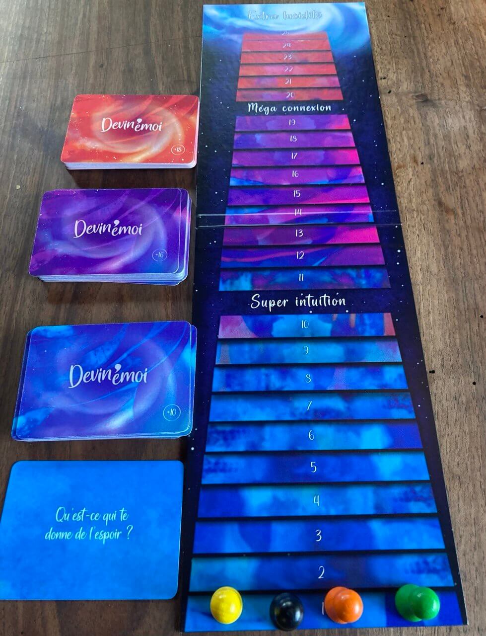 Le but officiel du jeu est d’atteindre la « Super Intuition », la « Mega connection » et l’« Extra Lucidité », mais ces formulations disent bien quelque chose de son esprit : ici, la réussite ne se mesure pas seulement en performance, elle se joue aussi dans la qualité de présence aux autres, dans l’intuition relationnelle et dans le plaisir partagé. Devin’emoi propose donc moins une course à la victoire qu’une expérience de dévoilement progressif. On rit beaucoup, on apprend des choses sur les autres, et on se découvre parfois soi-même au passage.