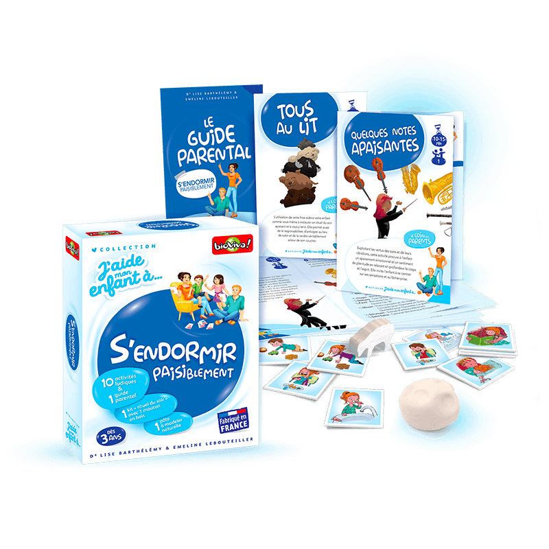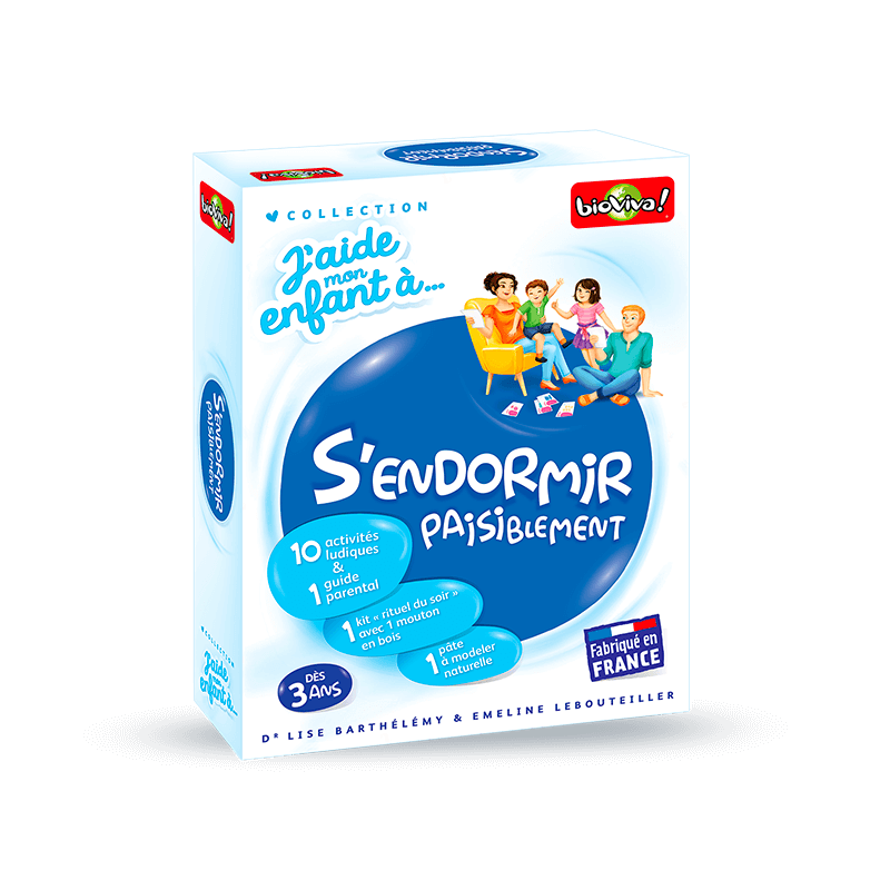 Un jeu plein de ressources pour aborder la thématique du sommeil de manière légère et structurée et redonner du souffle aux parents en maque d’inspiration. https://www.bioviva.com/fr/j-aide-mon-enfant-a/17-16-j-aide-mon-enfant-a-s-endormir-paisiblement.html#/1-langue-francais