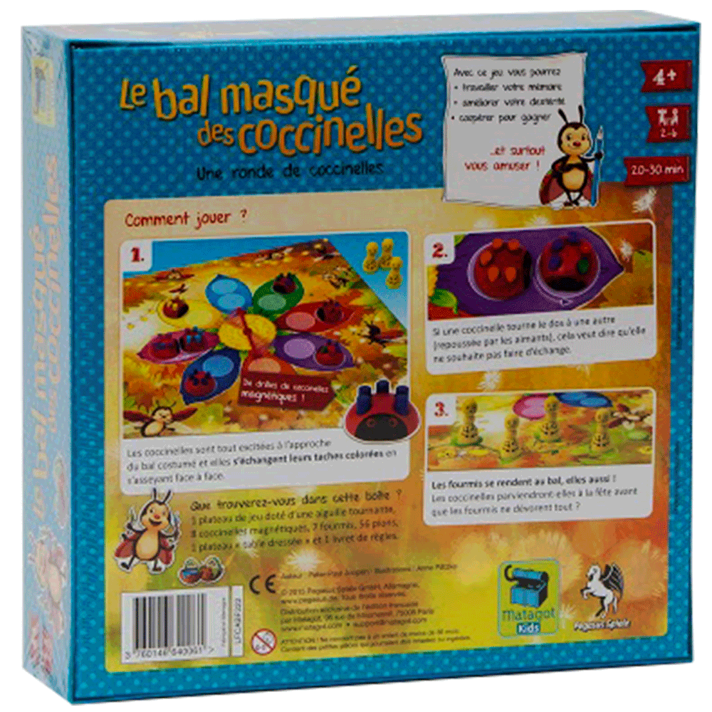 Pour échanger leurs points, les coccinelles se placent face à face, mais leurs nez aimantés les poussent à accepter ou à refuser l’échange. Le déguisement, plein de rebondissements, prend donc du temps. Et comme chacun-e sait, les fourmis sont très gourmandes… Les coccinelles arriveront-elles à temps pour le festin ?