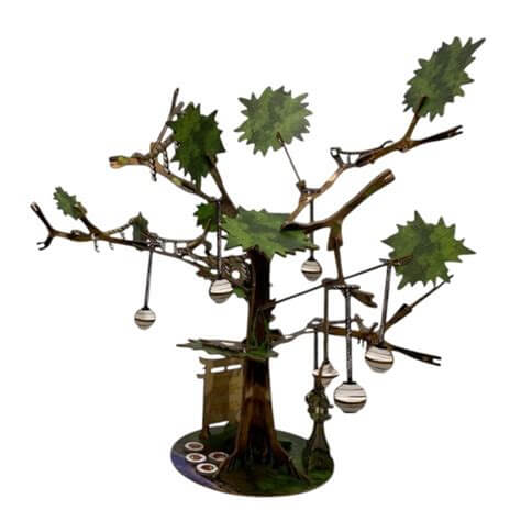 Devenir les esprits gardiens d’un chêne japonais… Au cœur de la forêt, un vieux chêne Kunugi dépérit doucement. Vous incarnez des Kodamas, ces petits esprits protecteurs des arbres, chargés de lui rendre sa splendeur. Ensemble, vous allez faire grandir son tronc, équilibrer ses branches, l’orner de feuilles, de nids d’oiseaux et de décorations inspirées du folklore japonais. À la fin, la table se transforme en véritable arbre en 3D, tout en bois, que vous aurez façonné collectivement.