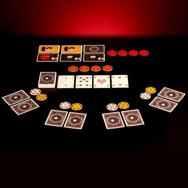 Inspiré du poker Texas Hold’em, THE GANG se joue de 3 à 5 participants et offre une mécanique coopérative originale. Révélez progressivement les cartes, discutez subtilement et classez vos mains grâce aux jetons pour ouvrir les coffres, mais attention aux alarmes !