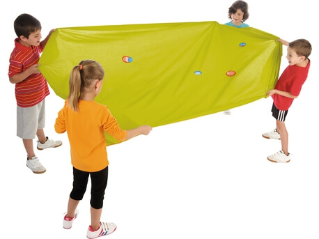 C’est une alternative extrêmement simple et intuitive au parachute, qui demande de peu de compétences d’animation, car les règles (fournies ou à inventer) sont évidentes, et même induites par la configuration de départ.