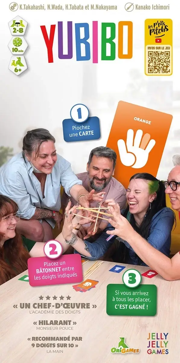 Un jeu d’adresse coopératif aussi minimaliste qu’irrésistible ! Avec Yubibo, une idée toute simple devient un moment de jeu immédiatement mémorable : construire ensemble une structure aérienne à l’aide de petits bâtonnets… tenus uniquement entre les doigts des joueur.euse.s. Dès les premières secondes, le jeu provoque ce que l’on aime tant en boutique spécialisée : de la curiosité, des rires, de la tension, et cette envie irrépressible d’essayer “juste une partie”. Jouable de 2 à 8 joueur.euse.s, dès 6 ans, pour des parties très courtes de 5 à 10 minutes, Yubibo a tout du petit format qui attire, surprend et fédère.